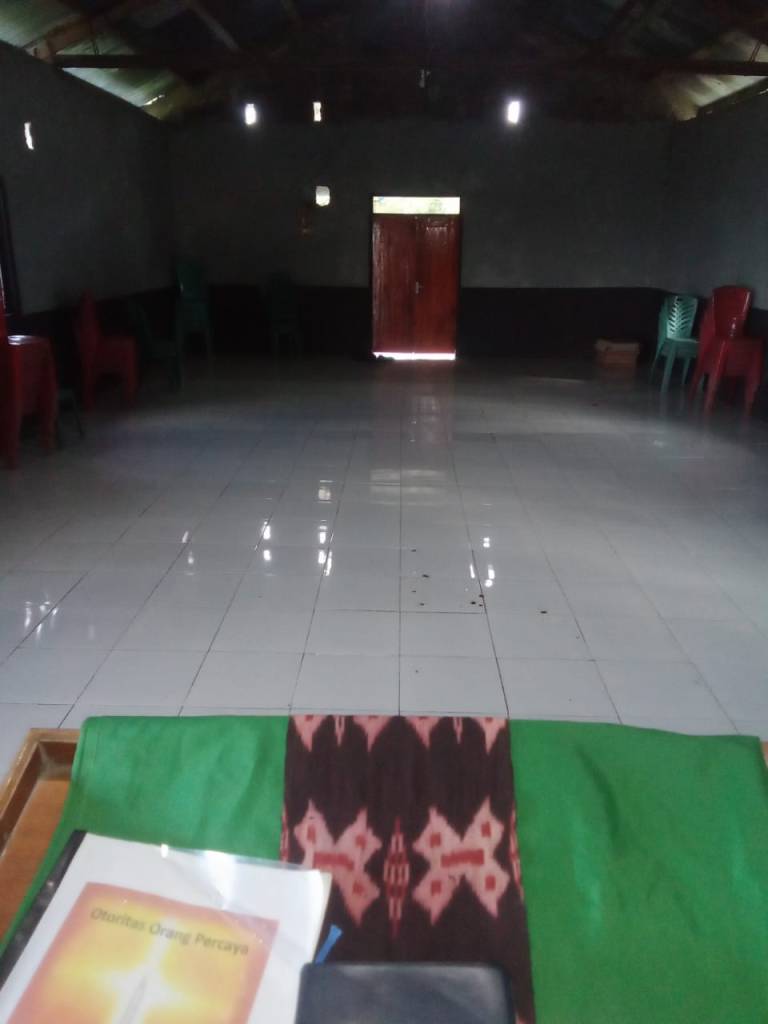 Puji Tuhan, gereja lain yang kami bantu pula dengan menyalurkan bantuan berupa pemasangan keramik adalah untuk GSJA Gunung Moria Bolubokat yang berada di Desa Bolubokat Barat, Sumba Tengah.