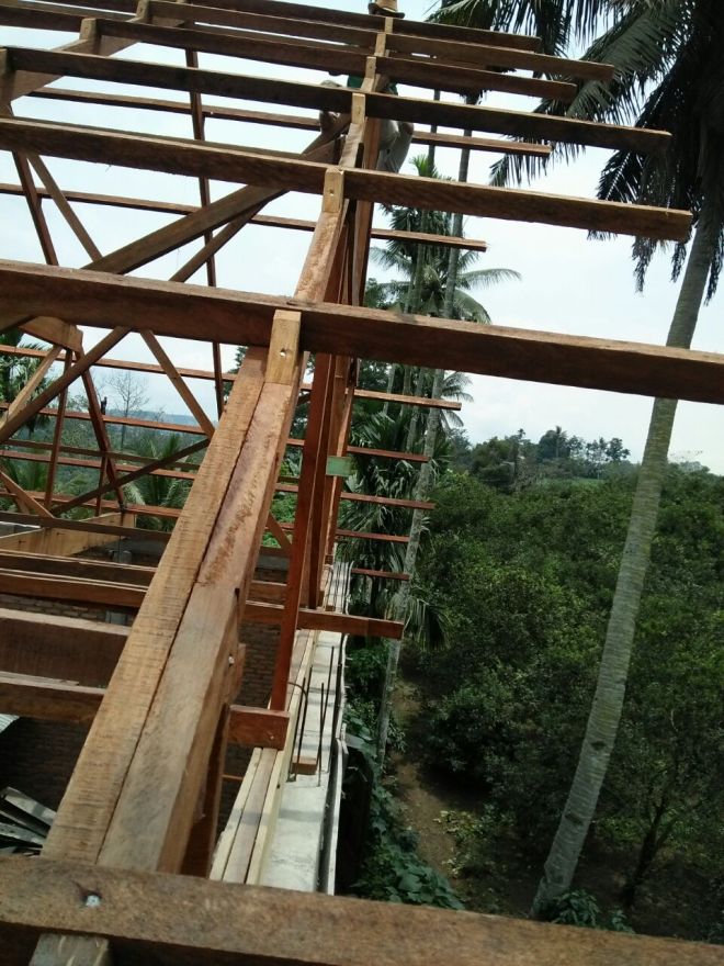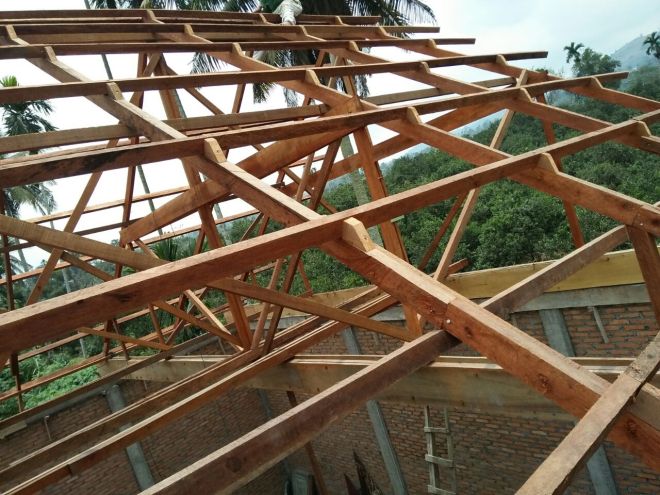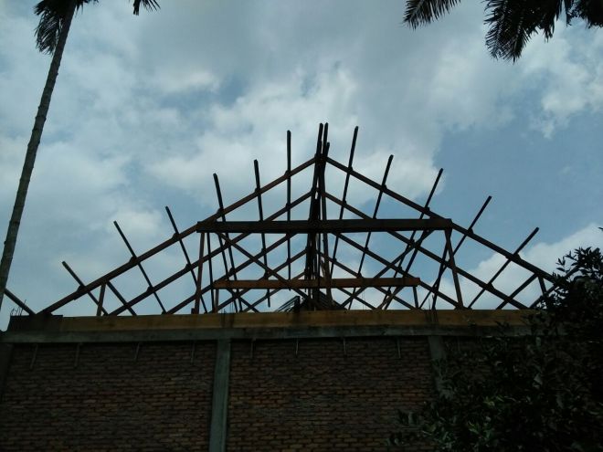Pemasangan Kerangka batap bangunan gereja yang sudah jadi